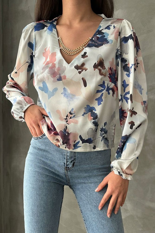 Chemisier satin imprimé aquarelle