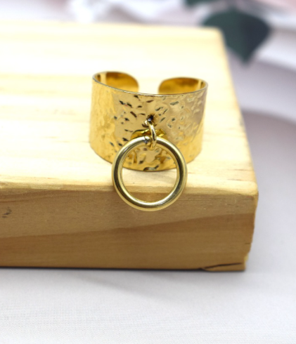 Bague Kate en acier inoxydable avec pendentif. Couleur doré.