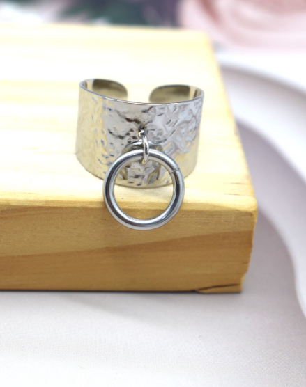 Bague Kate en acier inoxydable avec pendentif. Couleur argenté.