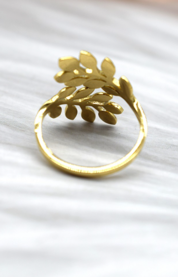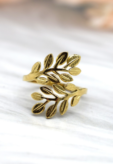 Bague Feuille en acier inoxydable de couleur doré.