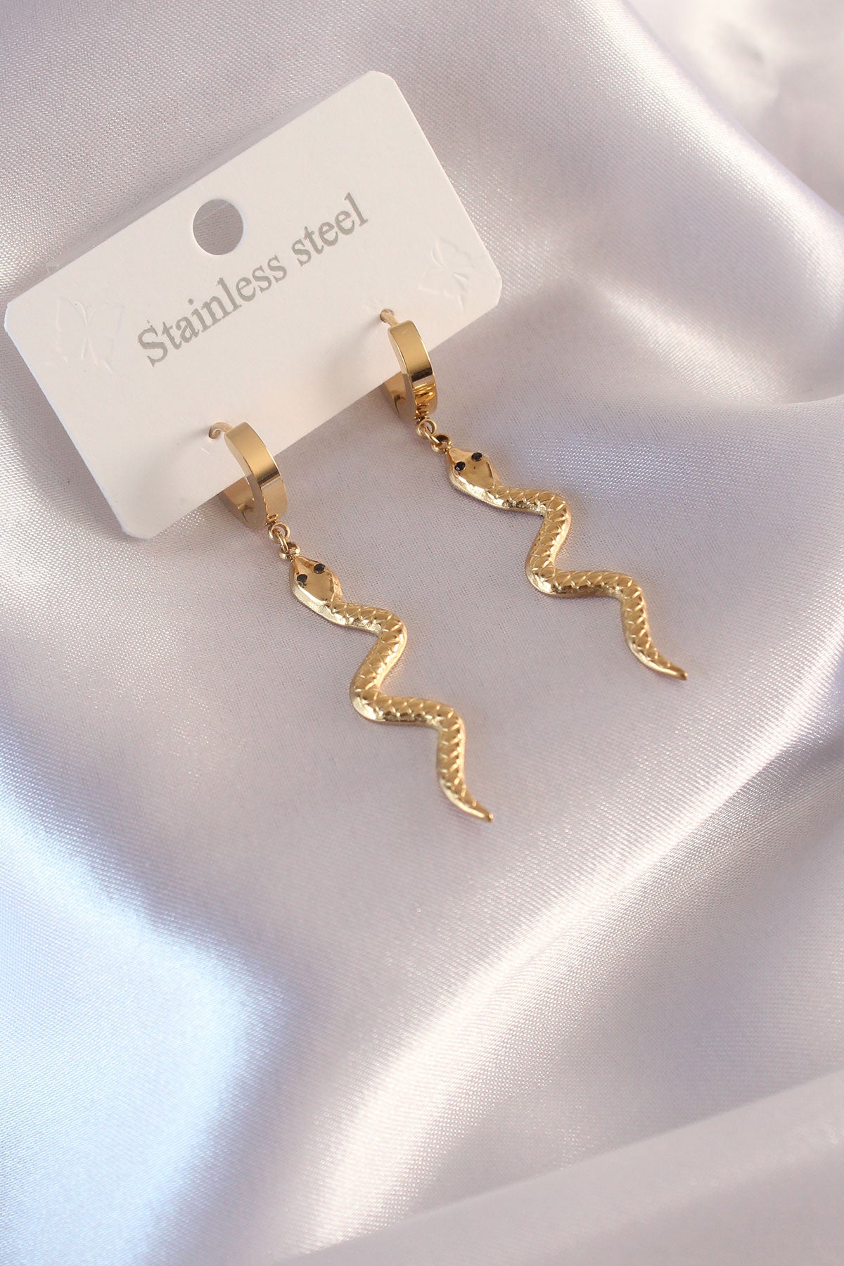 Boucles d'oreilles Caroline en acier inoxydable en forme de serpent.