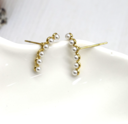 Boucles d'oreilles en acier inoxydable et de couleur doré avec des perles.