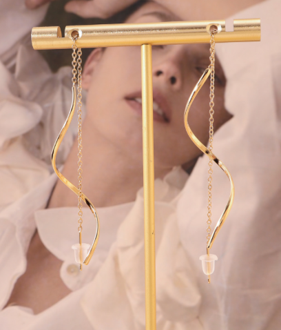 Boucles d'oreilles Aya en acier inoxydable pendante de couleur doré.