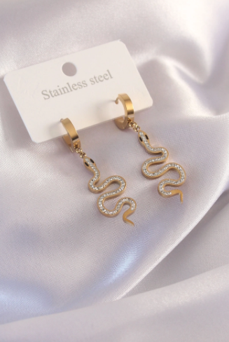 Boucles d'oreilles serpent dorées en acier inoxydable et ornées de zircon.