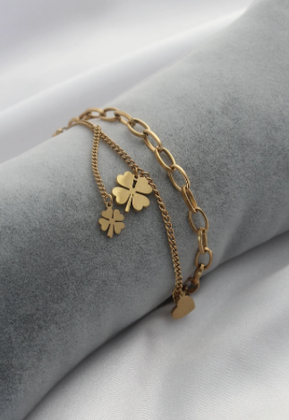 Double bracelets en acier inoxydable avec trèfles en pendentif.