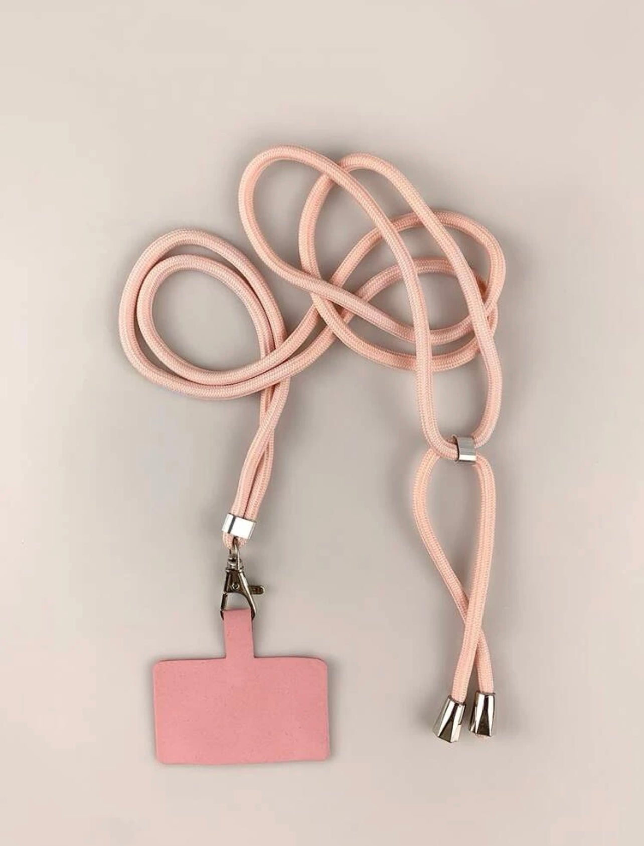 Lanière de téléphone portable de couleur rose et réglable.