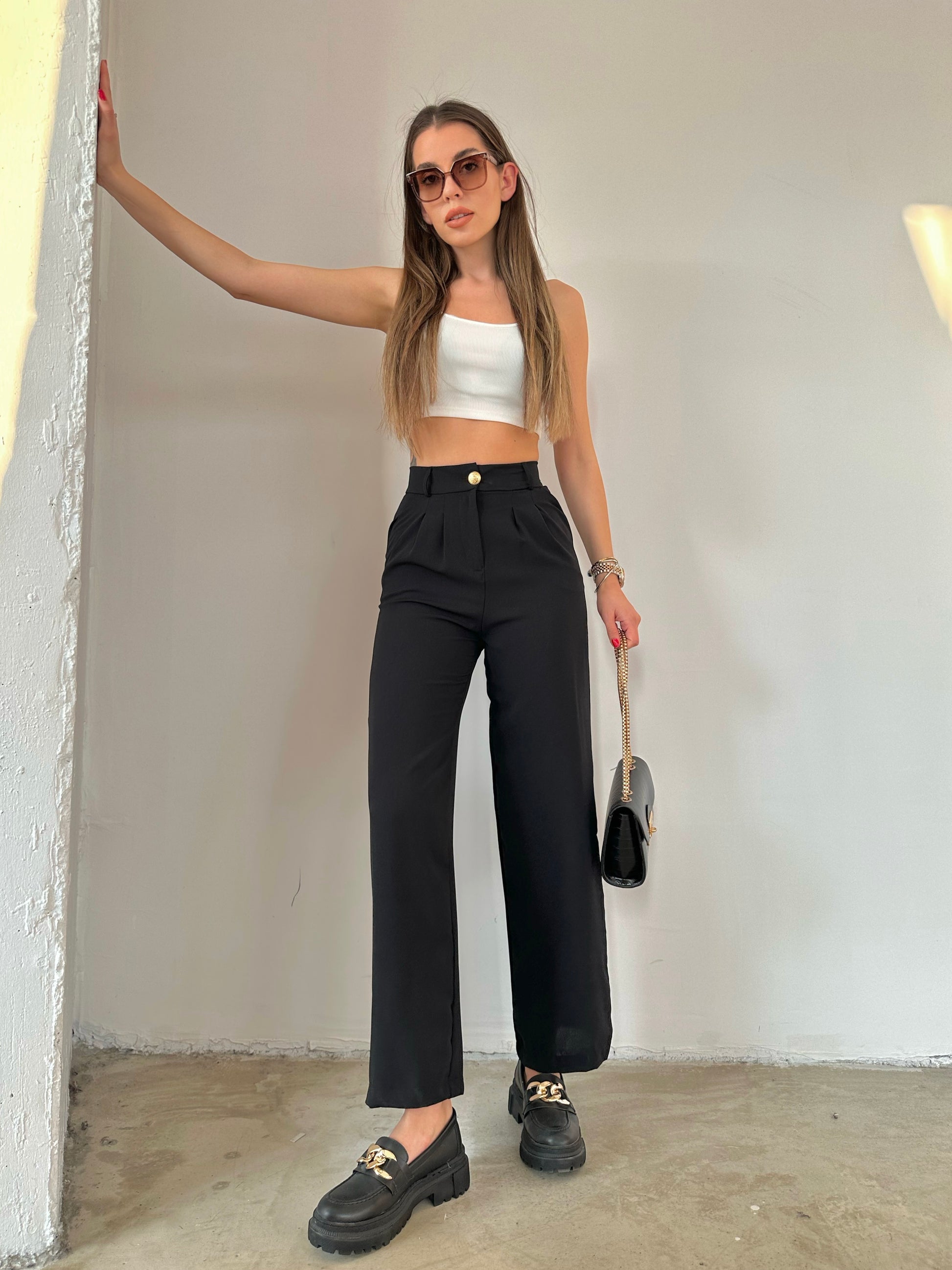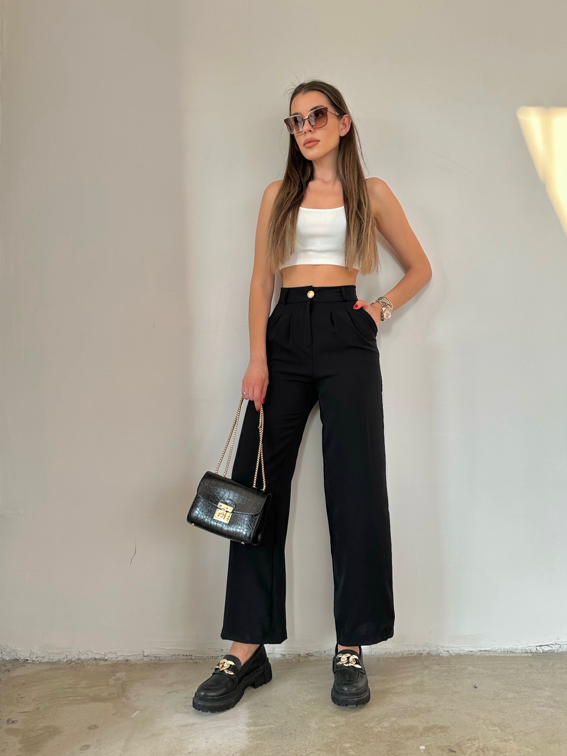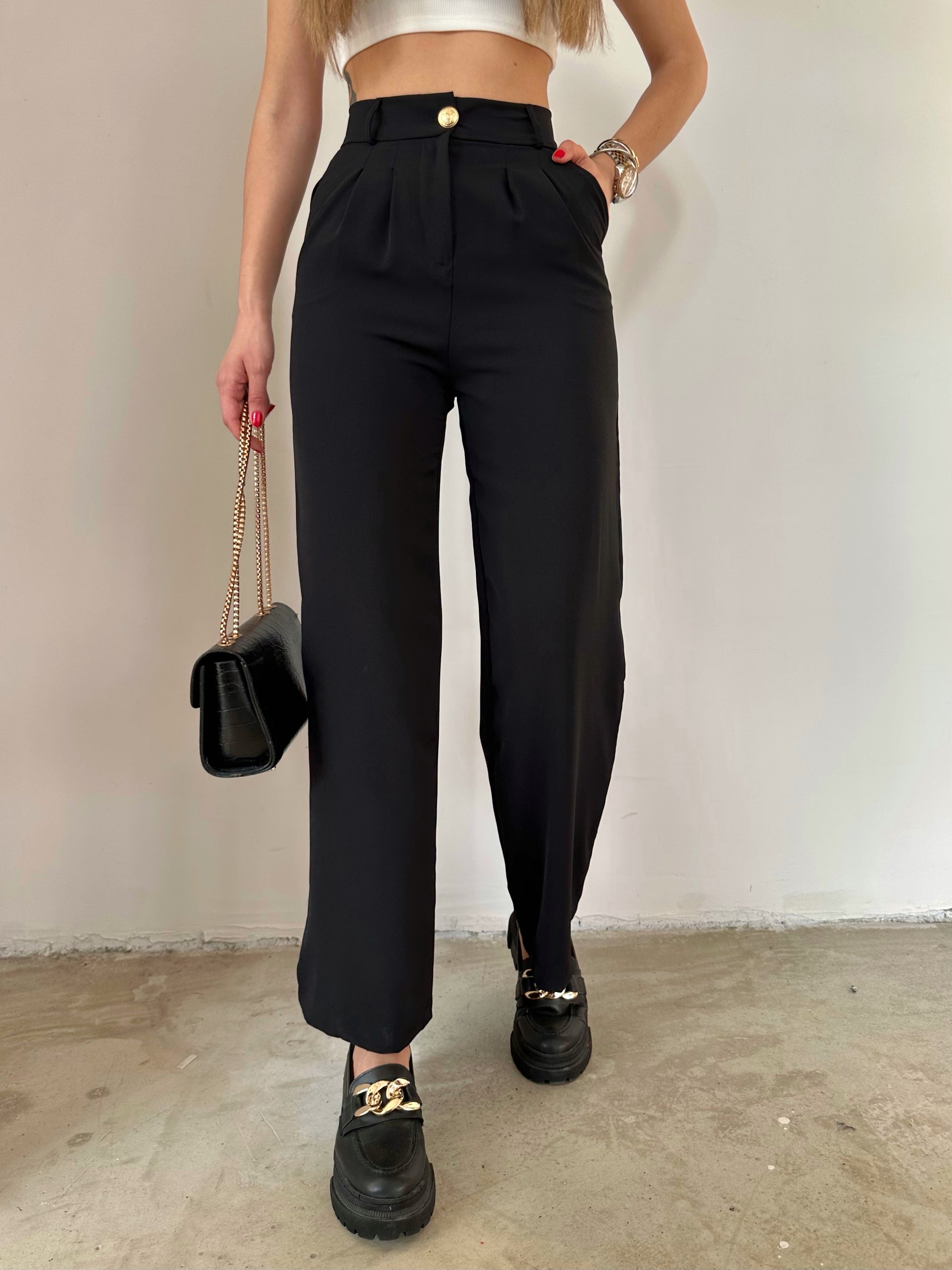 Pantalon noir évasé sur le bas