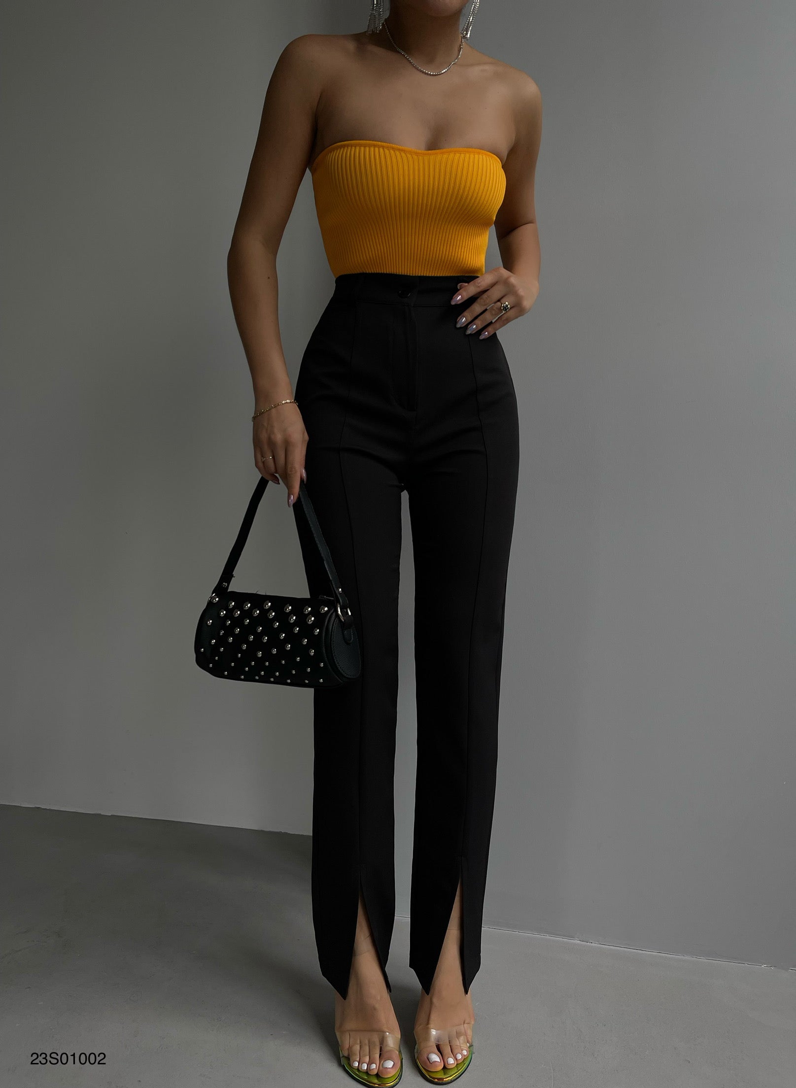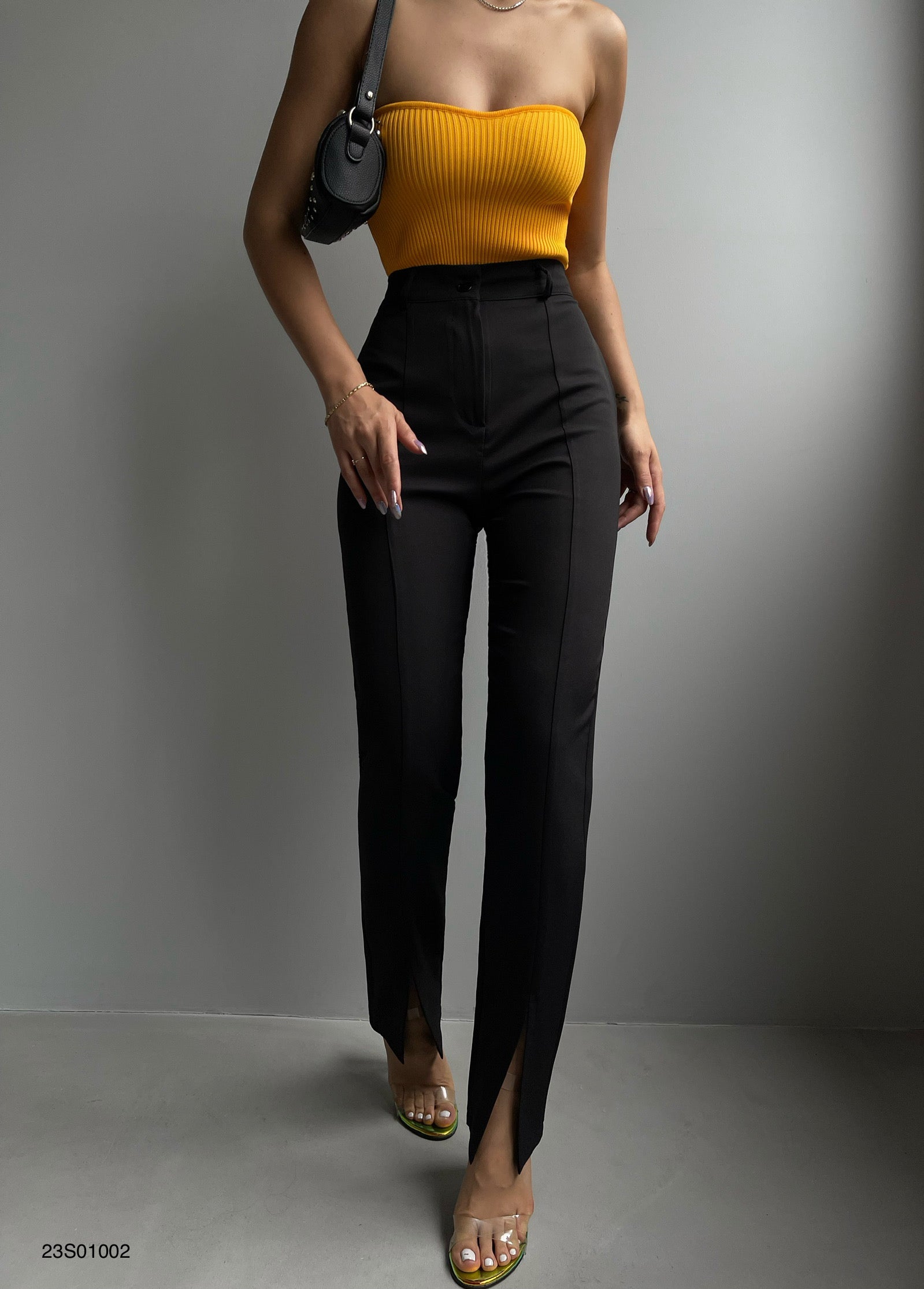 Pantalon noir classe, avec fente sur le bas disponible en taille S, M, L