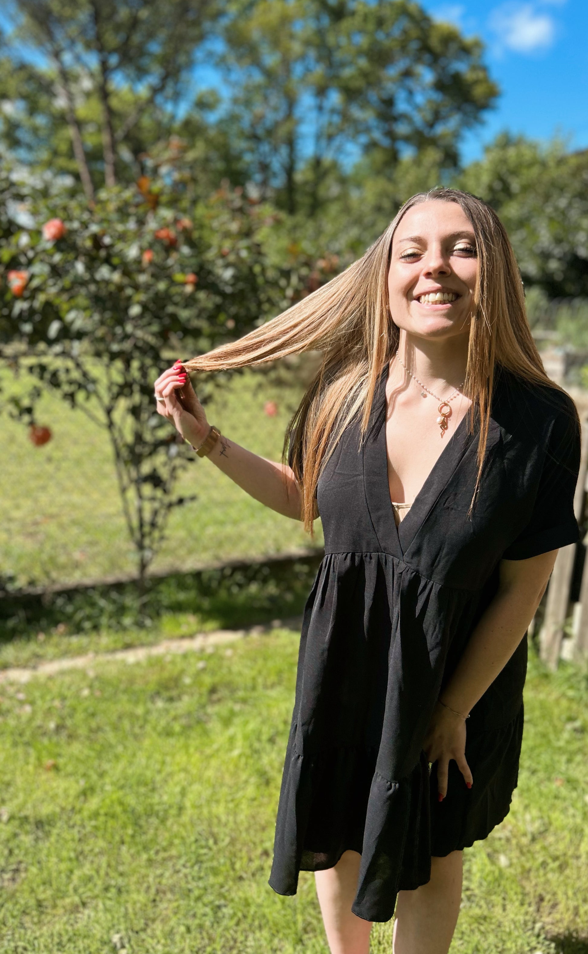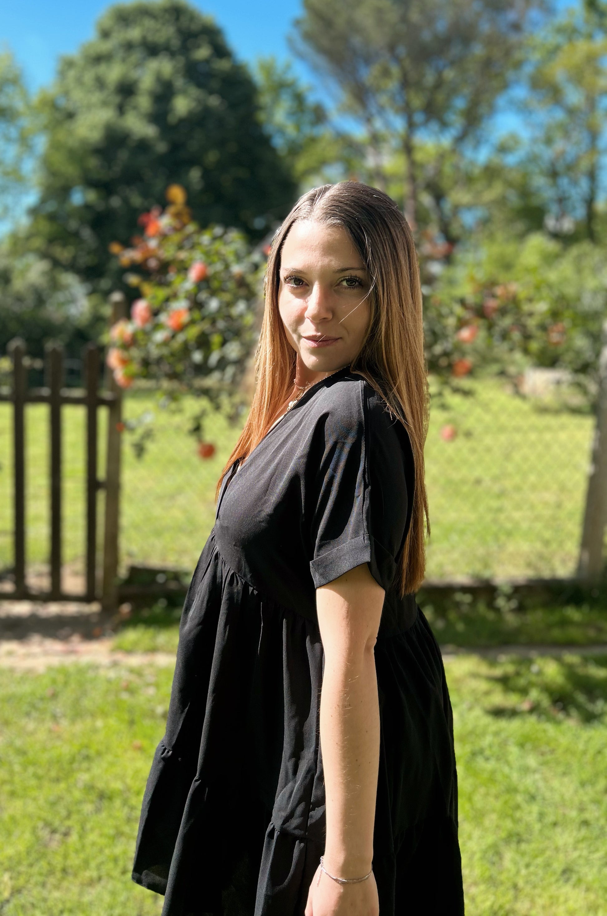 Robe Santana à volants disponible en noire ou rose. Taille unique.