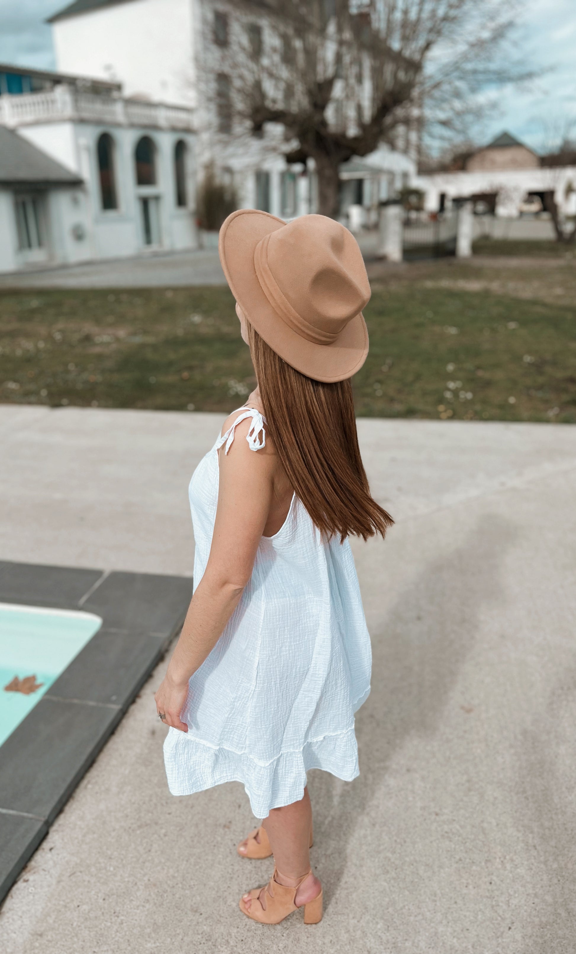 Robe blanche en gaz de coton fluide. Idéal pour la plage. Longueur 65cm.