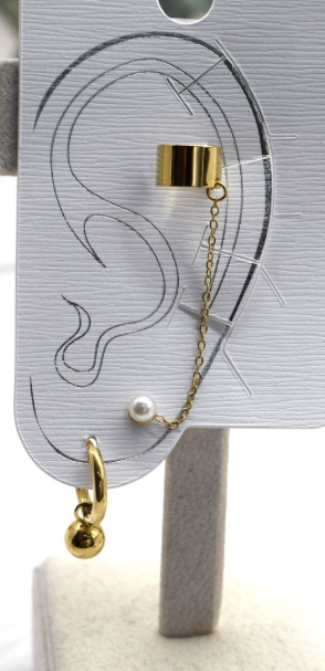Set boucles d'oreilles et piercing d'oreille avec chaine en acier inoxydable. Pour une seule oreille !