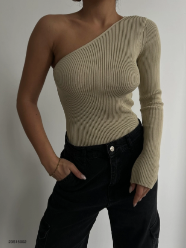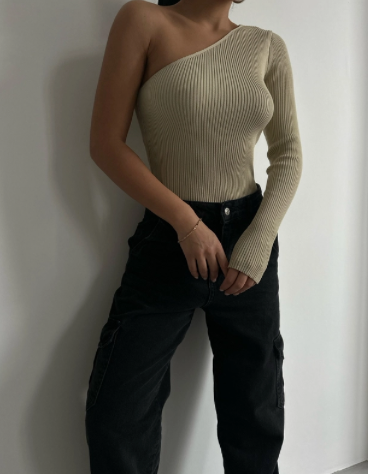 Top en maille beige asymétrique à manche longue Aloïse.