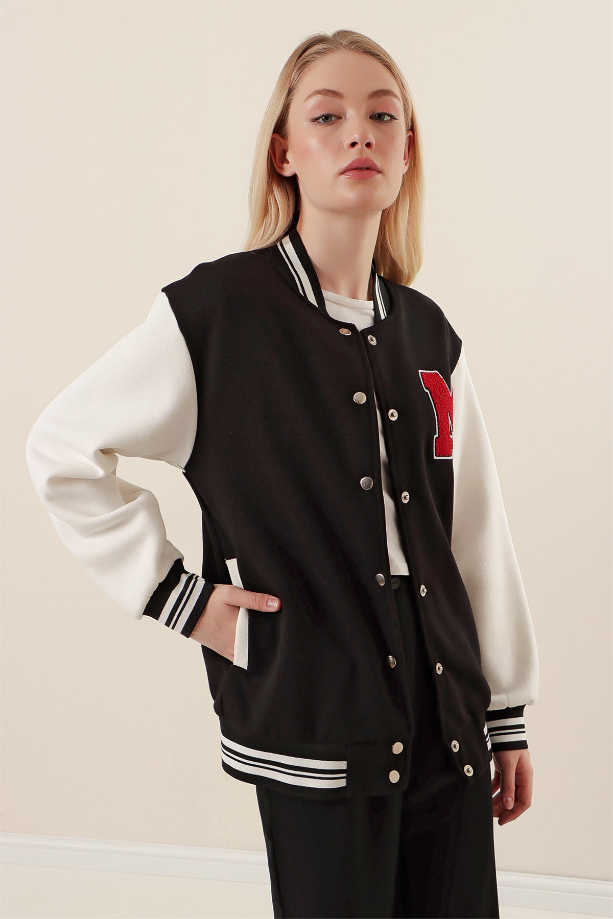 Veste américaine noire et blanche