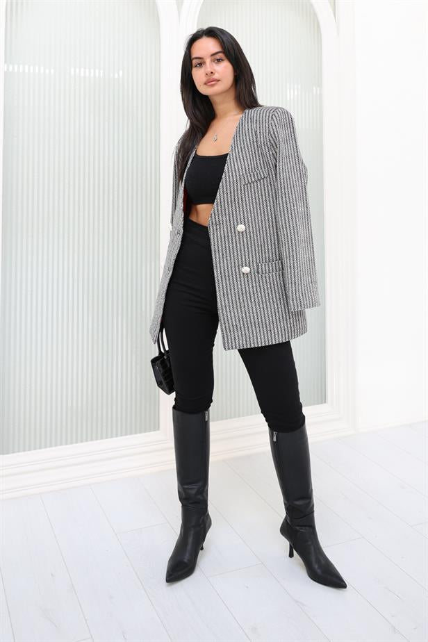Veste vintage à rayures blanches et noires