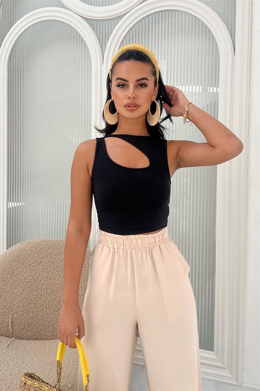 Crop top noir anneaux