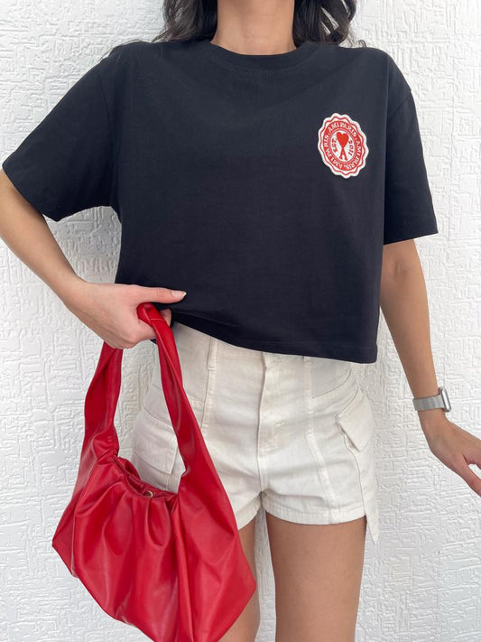 Crop top noir perles