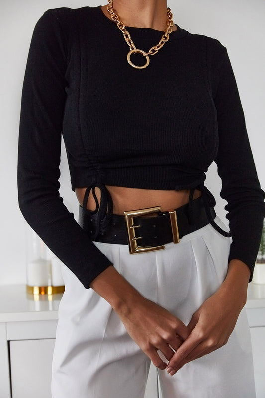 426 - Pull noir mailles crop top