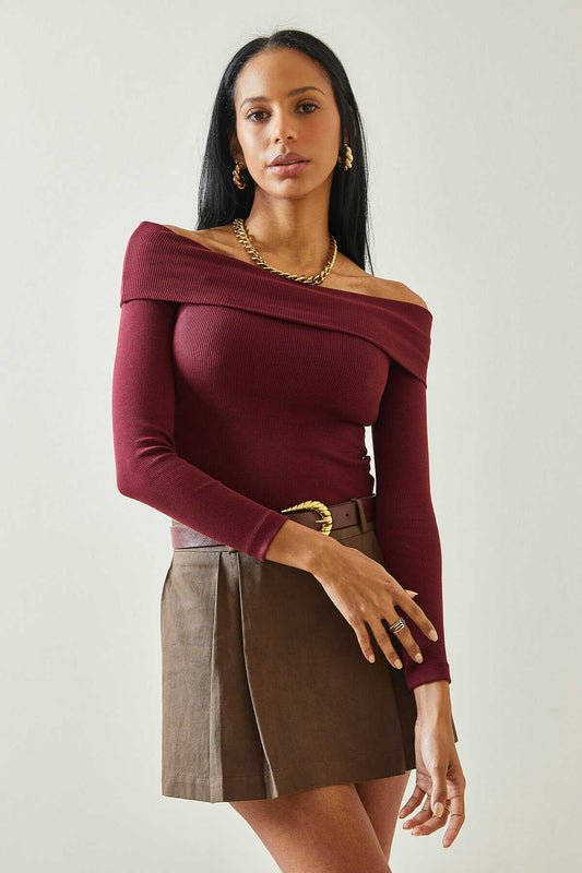 Agotado425 - Haut bordeaux épaules nues