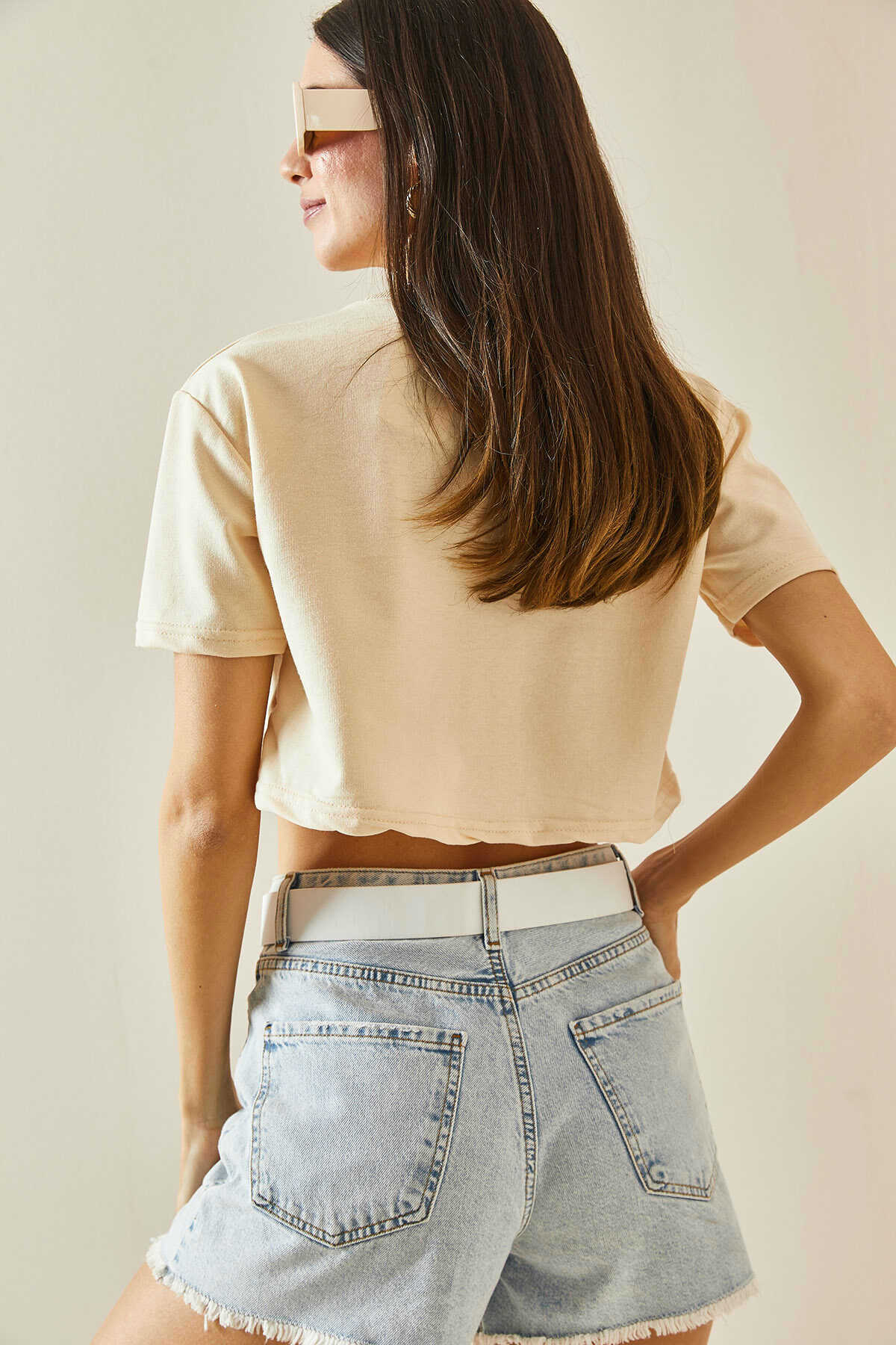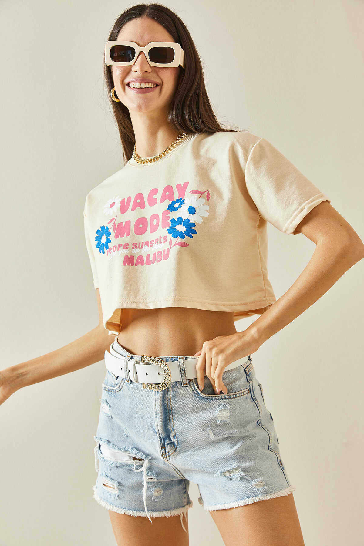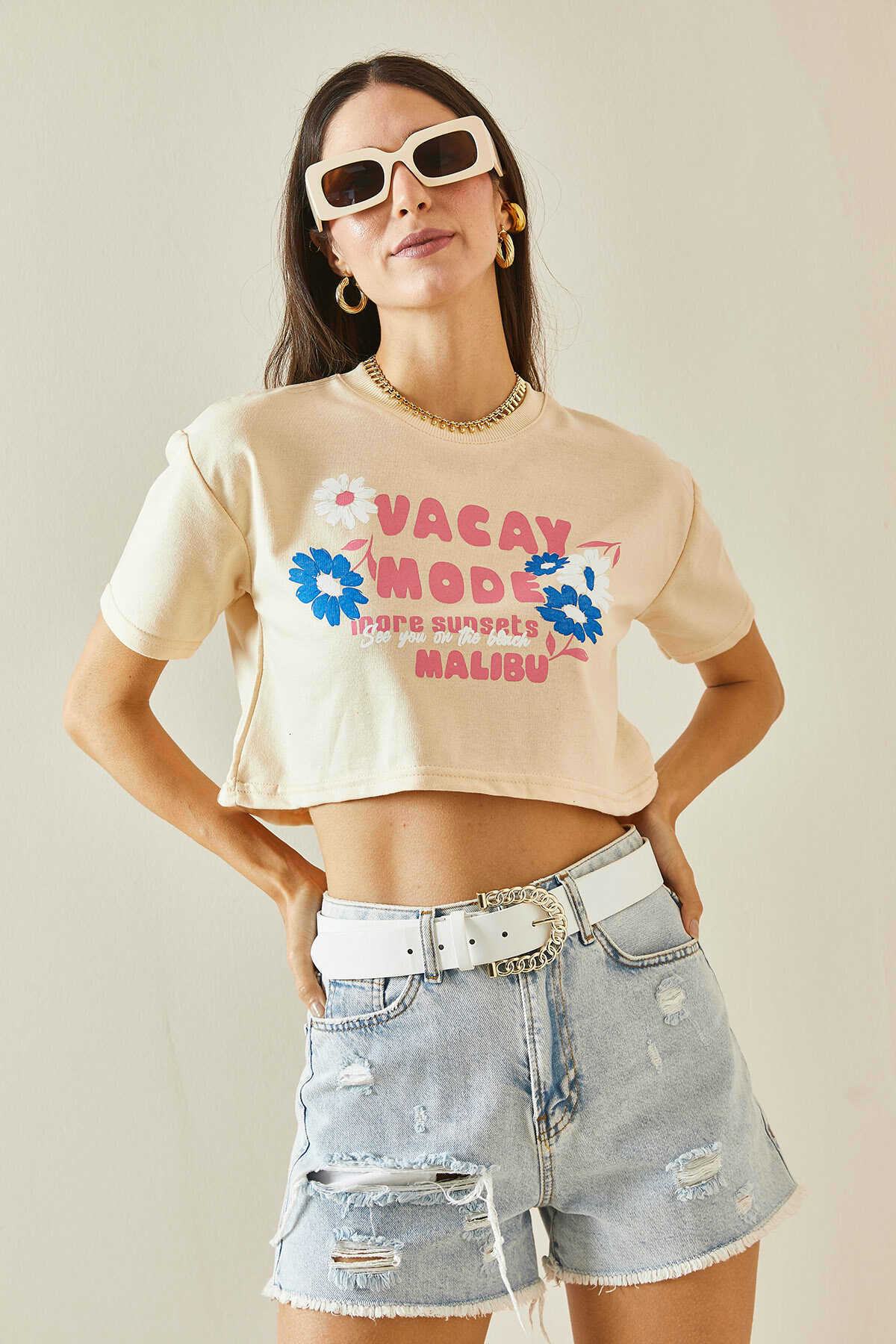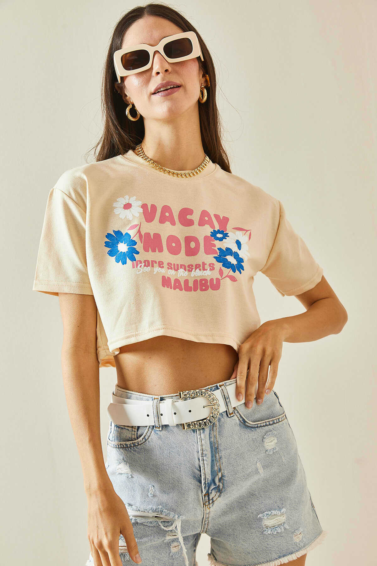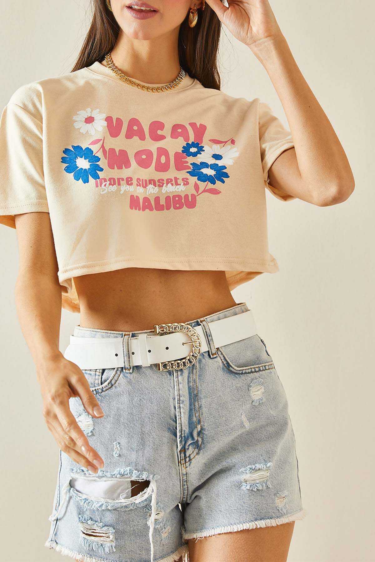 Tee shirt court beige avec imprimé
