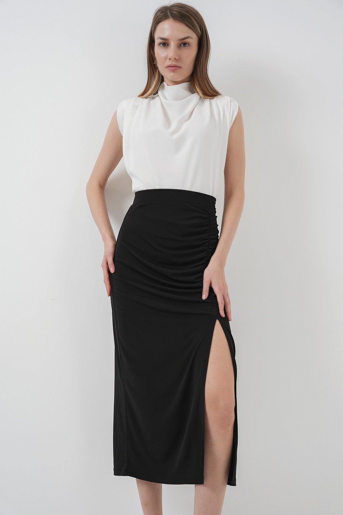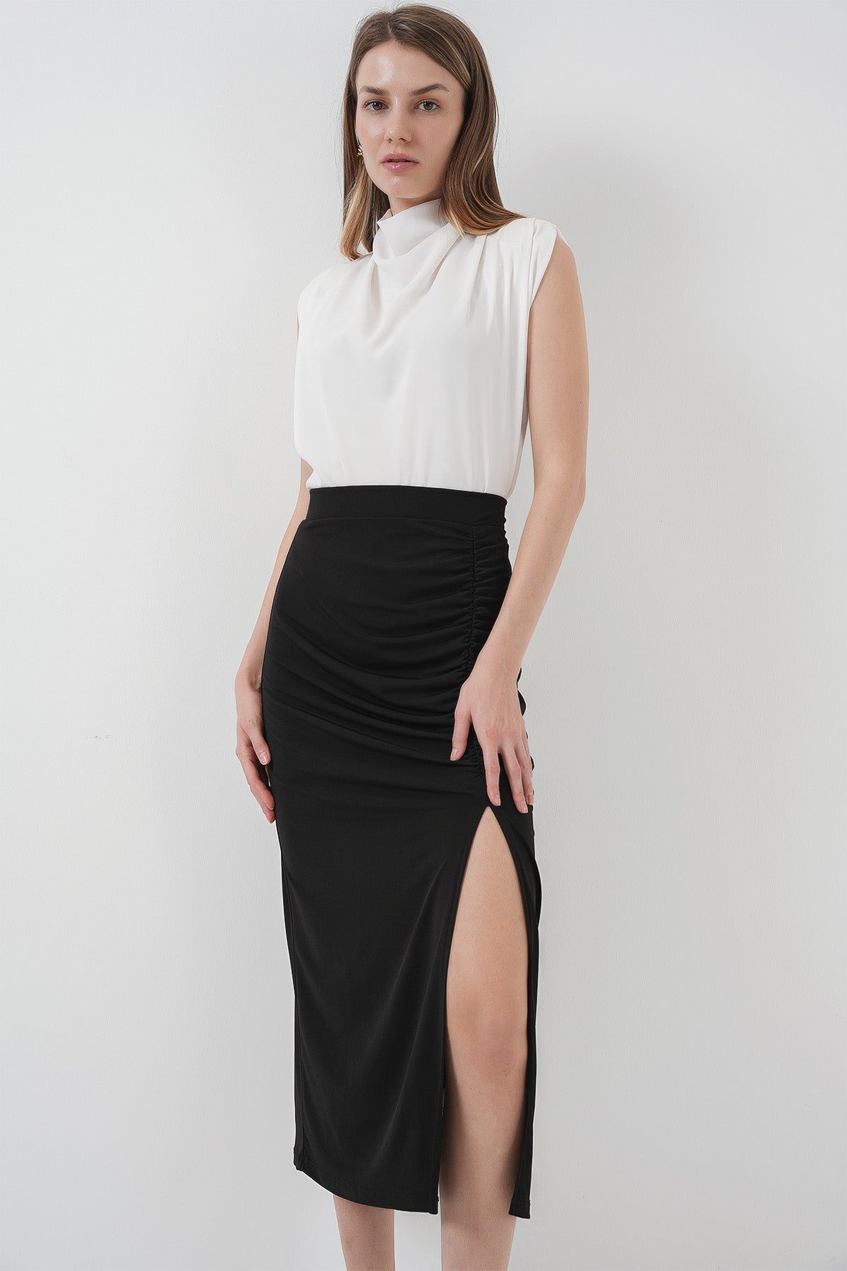 Jupe mi longue fendue noire